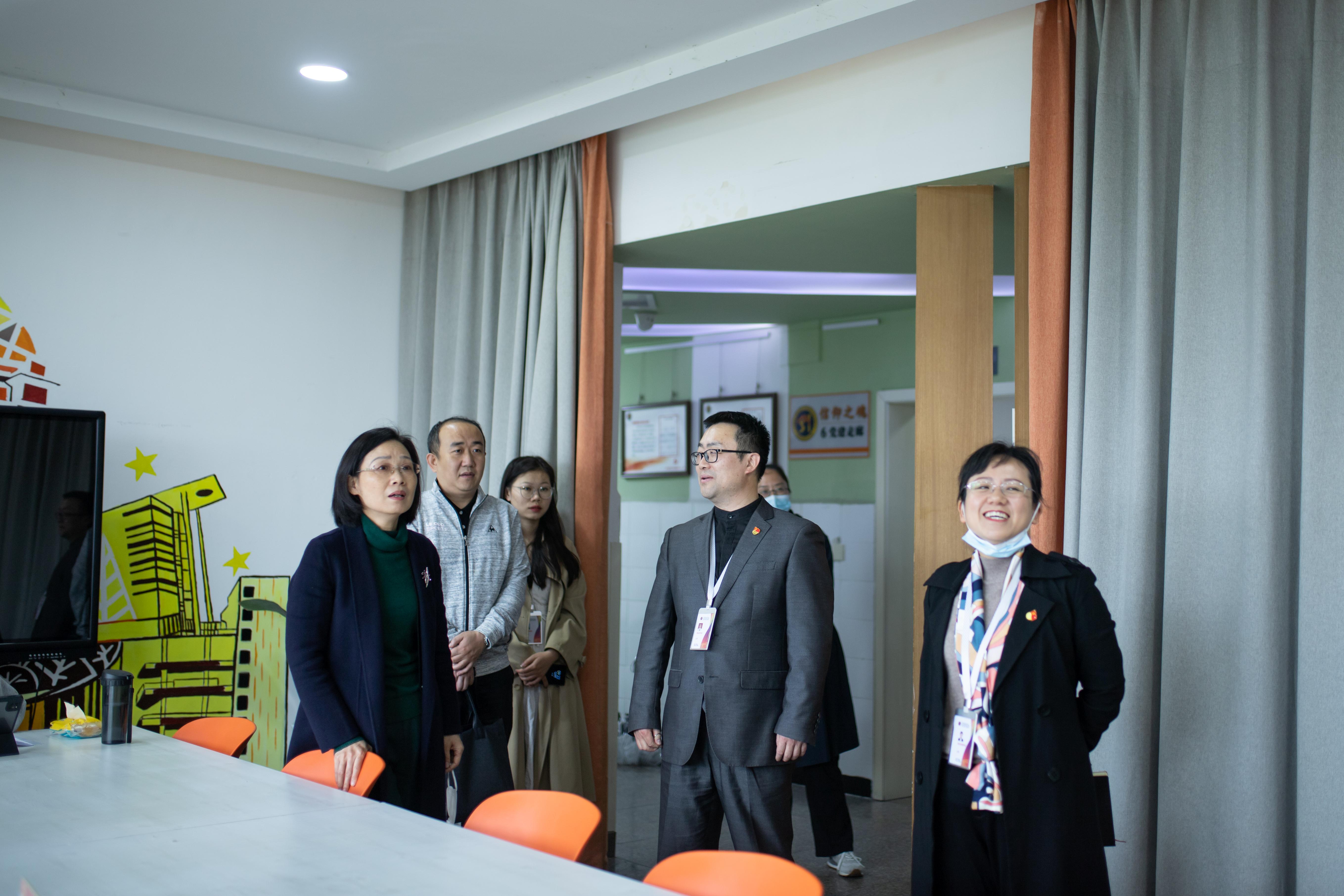 杨爱华副书记一行从一楼审美走廊开始,向学院甘霖书记详细了解了唐臣书院分别以党建、科技、心理健康、唐臣精神、国学为内涵的各楼层主题走廊设置以及党员课堂、科创空间、心灵家园、唐臣学堂、孔子学堂、唐臣文化驿站等公共区域的使用情况,对唐臣书院“一站式”服务管理和“六横一纵”环境育人的整体设计表示赞赏,对走廊照明灯亮度这一细节提出建议,希望可以保持宿舍走廊常明常亮,减少因灯光亮度不足对同学心理造成的影响。