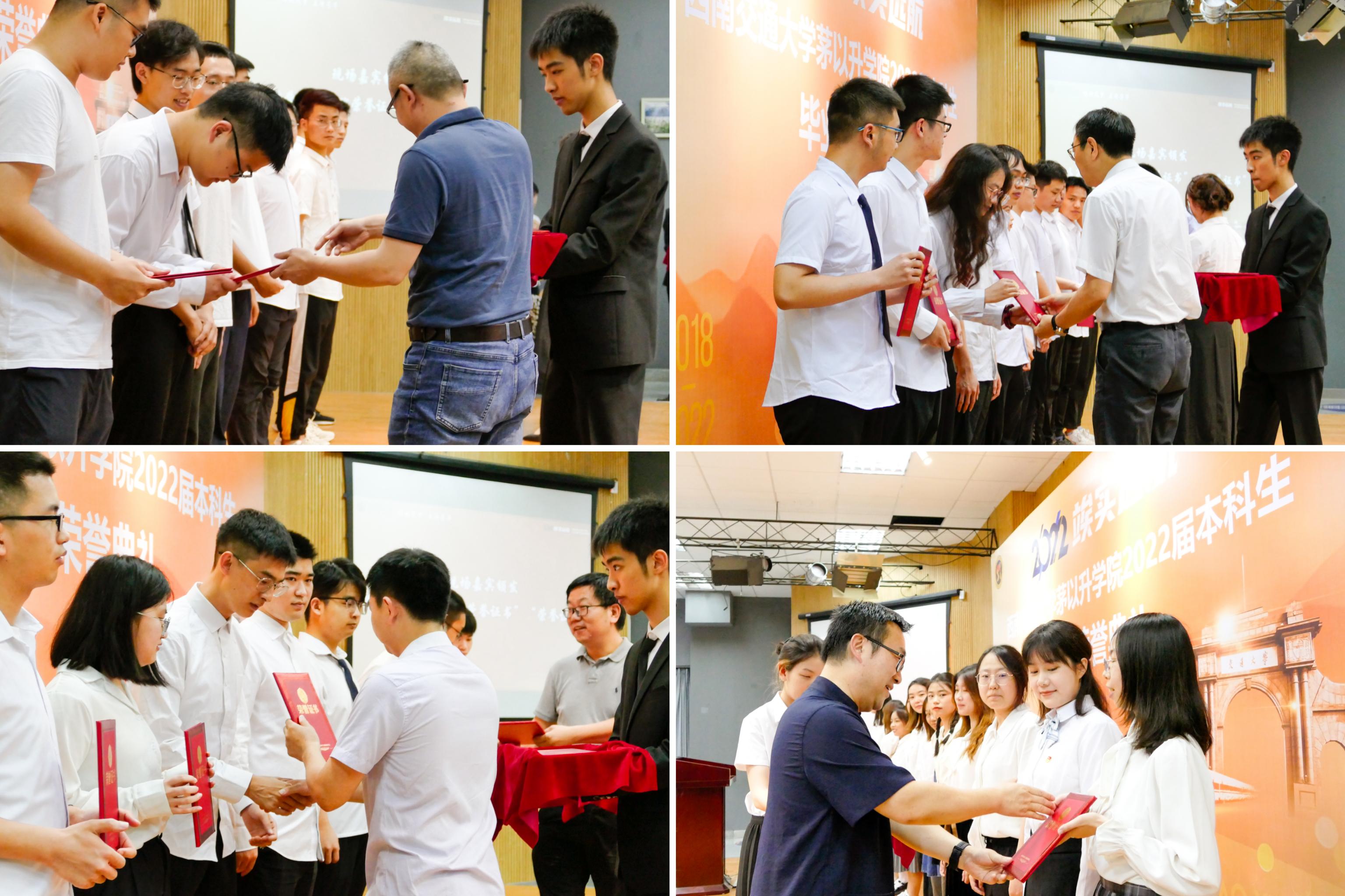 接着,崔凯副院长宣读“特优荣誉证书”“荣誉证书”表彰文件,并与甘霖书记一同为获奖的12位同学颁发了“特优荣誉证书”,与会嘉宾分别为145名同学颁发了“荣誉证书”。