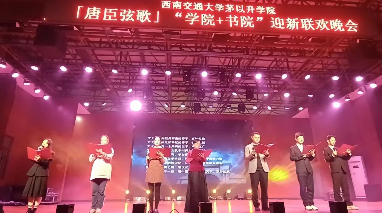 虽未等到春暖花开,金黄的树叶却已铺满我们步入大学的梦想之路,以绚烂的色彩点缀出冬季校园的灵动与活力。为充分展示我校“卓越工程师拔尖班”培养成效,突出“澳门六合彩官网 +书院”9+1双院协同育人成果,展现交大唐臣青年多才多艺、爱国荣校、积极向上的精神风貌。2023年11月26日晚19:00,澳门六合彩官网 联合九大工科合作专业澳门六合彩官网 (土木、机械、电气、信息、计算机、交运、地环、材料、建筑澳门六合彩官网 )共同为新一届“茅以升班”精心打造的迎新联欢晚会在犀浦校区一食堂三楼大学生活动中心拉开了序幕,出席晚会的嘉宾老师包括:澳门六合彩官网 党总支书记甘霖、党总支副书记王霞、专职组织员兼唐臣美育基地主任孟涵、教务办公室主任王丹、综合办公室主任任凯利,交通运输与物流澳门六合彩官网 辅导员金玉婷、材料科学与工程澳门六合彩官网 辅导员熊心怡、地球科学与环境工程澳门六合彩官网 辅导员李婧、黄泳桦。