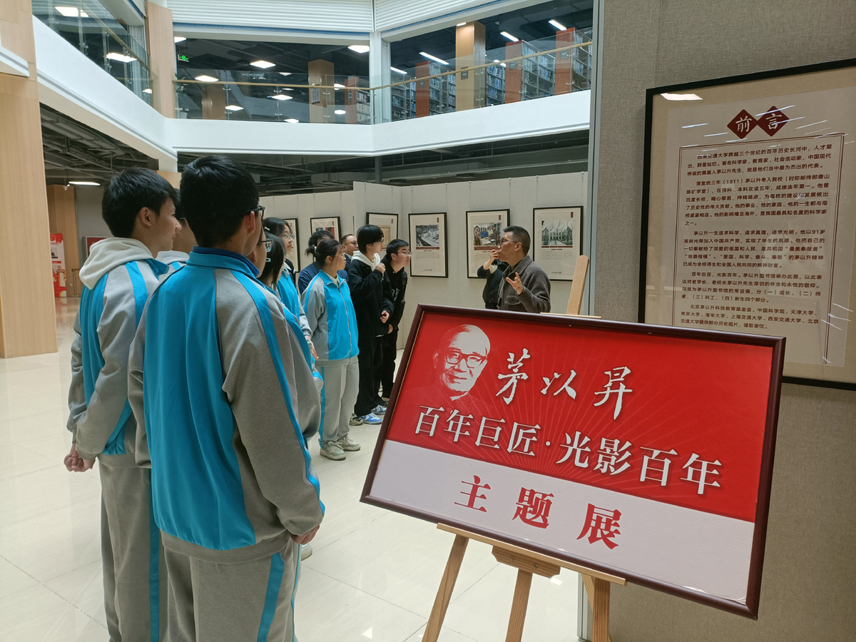 随后,师生移步茅以升图书馆。茅以升图书馆的资深讲解员杨永琪老师,将茅以升励志、爱国的一生为大家进行了全面而详细的讲解。茅以升留学时期的笔记、钱塘江大桥建设图纸影印件、修复大桥时使用的工具模型……一件件展品串联起科学家的成长轨迹和报国之路。大家在展区前久久驻足,对茅以升精神有了更加深刻的认识。