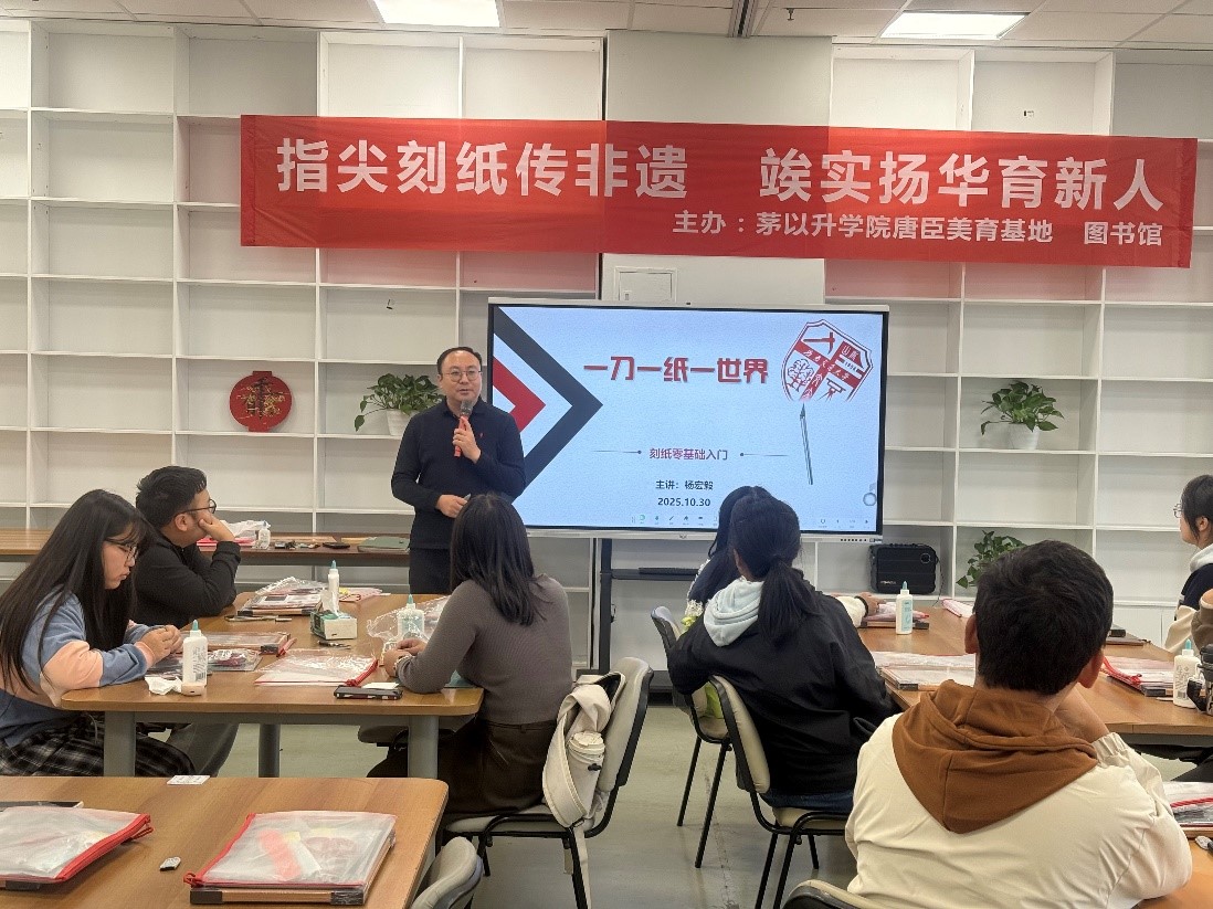 为传承中华优秀非物质文化遗产,将非物质文化遗产教育与高校“立德树人”根本任务深度融合,进一步践行“竢实扬华、自强不息”的交大精神,丰富学生课余文化生活,培育人文素养与提升动手实践能力,20251030日下午,澳门六合彩官网 联合图书馆在犀浦校区图书馆TA615多功能活动室共同举办了“指尖刻纸传非遗,实扬华育新人”唐臣美育主题活动。