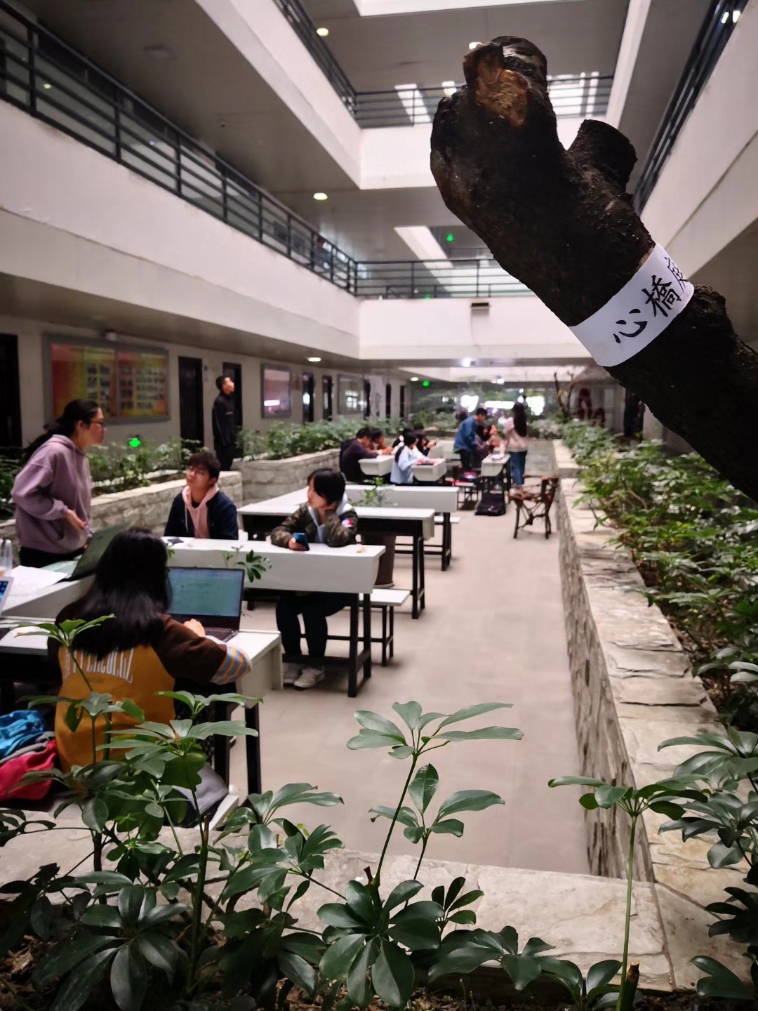 从夏至秋,在党员、入党积极分子、志愿者多达10次的修正、打扫、装饰下,心桥庭院终于在11月初完成了最终装饰,形成了一片受到同学们喜爱和广泛好评的交流场所。自庭院修成之际,来此学习、讨论、拍照、甚至取景的同学便络绎不绝,让心桥庭院真正成为了搭建同学交流的“心桥”!