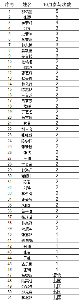 为了进一步落实党要管党,从严治党的要求,进一步提高党员的积极性,完善党员管理制度,澳门六合彩官网 自2018年10月起推出了《党员成长履历》和《积极分子成长履历》。为进一步落实党务管理的公开化和透明化,对积极参与党内活动的党员提出表扬,同时对对待组织生活懈怠的党员进行警示,特将党员2018年10月成长状态公示如下: