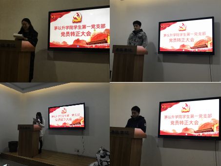 申请转正的预备党员孟媛等九名同志宣读自己的转正申请,每个同志都详细汇报了自已在预备期间的表现,表达了入党的志愿和决心,并对自己在作为一名预备党员期间,在思想、学习和工作上的进步与不足作了认真的总结。