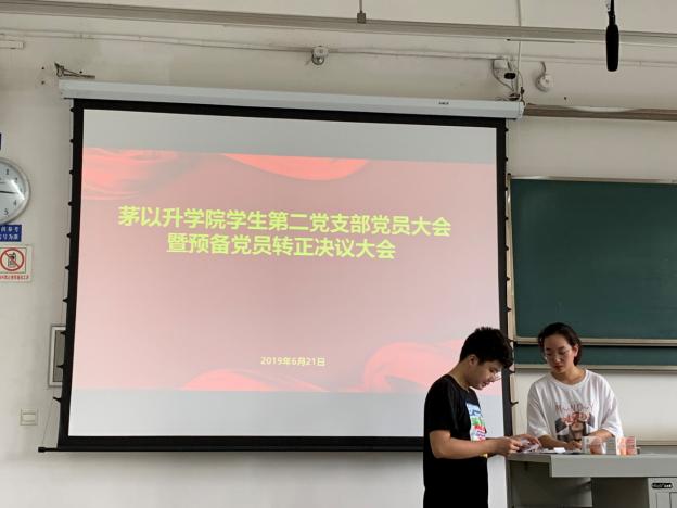 学生第二党支部党员大会暨预备党员转正决议大会在雷燕君同志的总结中圆满结束。本次党员大会暨预备党员转正决议大会是一次成功的、开拓进取的大会,相信新一批中共正式党员同志一定能够做到为中华民族谋复兴,为中国人民谋幸福。
