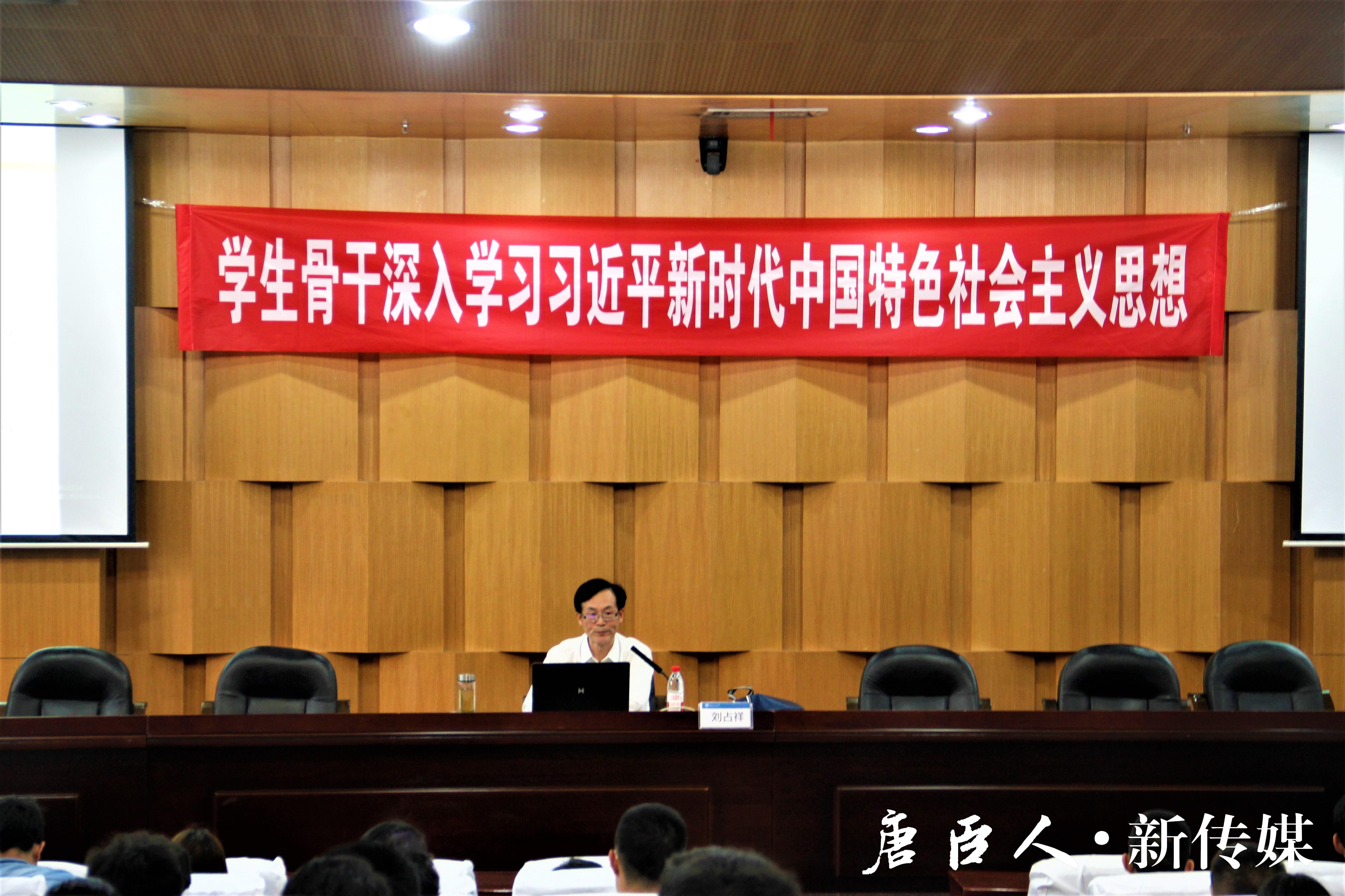 刘占祥教授讲到,中国已经不同以往,成为了强大的发展中国家,进入了社会主义的新时代。他引用了习近平总书记在5月4日的发言,指出“理想指引人生方向,信念决定事业成败”,中国特色社会主义是我们党带领人民历经千幸万苦找到的实现中国梦的正确道路,也是广大青年应该牢固确立的人生信念,并从历史领域和现实领域生动阐述了为什么要坚定中国特色社会主义。