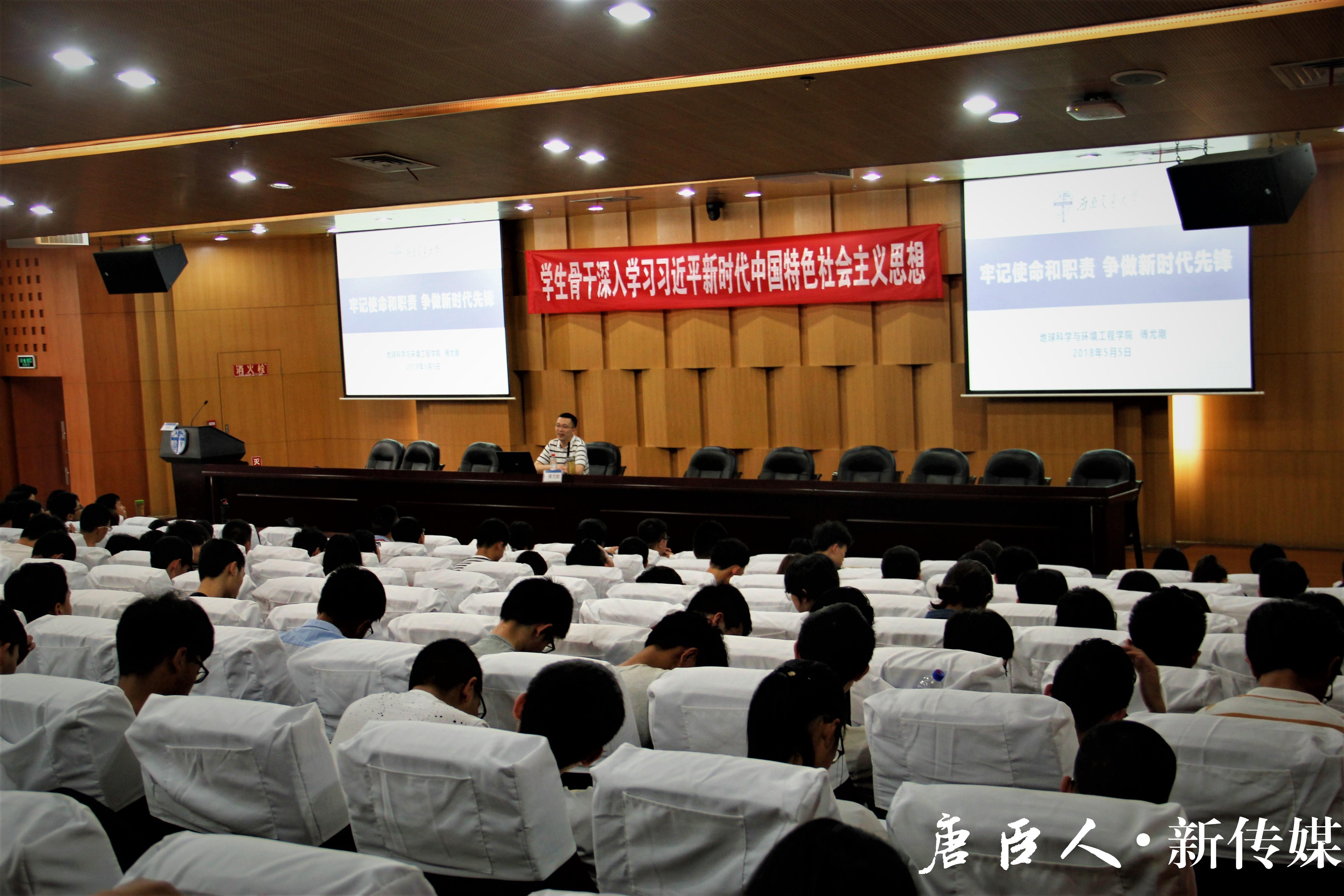 党委副书记傅尤刚主讲的班干部培训讲座于图书馆二号报告厅准时进行。本次讲座的主题为“牢记使命与职责,争做新时代先锋”。