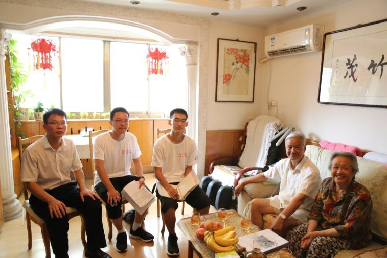 活动当日,来自石家庄市的2018级新生王一帆同学的加入,使得本次活动更加有意义。上午9时,一行人首先来到1957届毕业生程振中老学长家中进行探望并送去母校与交大学子真切的祝福与美好的祝愿。程老前辈是交大唐山时期的土木建筑系毕业生,我们一行人的到来打开了老学长的话匣子,老人家从在唐山时期的生活学习讲起,一直讲到现如今的退休生活,字里行间都透着身为交大人的自豪感。中间穿插自己从毕业到退休前的五十年艰苦奋斗历程,尤其是老人家谨记了一辈子的交大精神“竢实扬华,自强不息”及自己对其精髓的领悟,深深地影响着我们一行人。临走前,程老前辈特意叮嘱新生王一帆要传承交大谨慎,为母校争光。