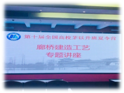 举行,茅以升科技教育基金会秘书长茅玉麟女士发表讲话并向学生代表授旗,仪式结束后合影留念,随后前往浙江古桥馆参观古桥模型,下午开展了廊桥建造工艺专题讲座,同学们认真聆听,对于廊桥的建造技艺有了初步的了解。