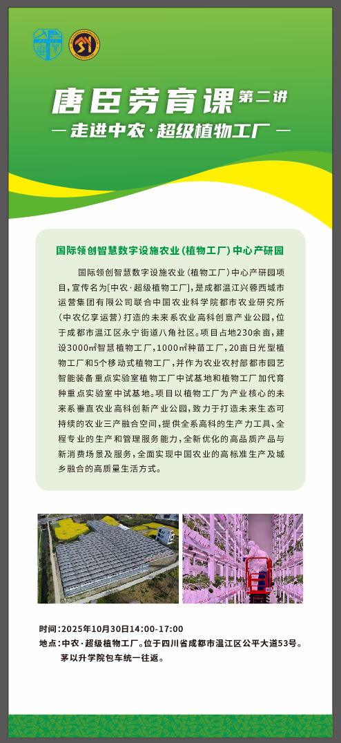 唐臣劳育课第二讲——“走进中农·超级植物工厂”开讲啦!