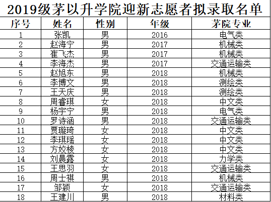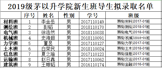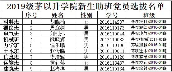 研究决定,选聘以下36名同学担任2019级学生班导生、驻班党员和迎新志愿者职务,具体名单公示如下:
