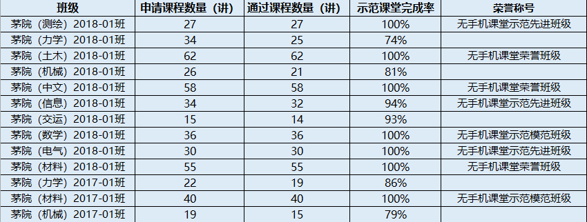 澳门六合彩官网 第六期期无手机课堂示范班活动已结束,考核情况已公示,经澳门六合彩官网 审核,现根据《无手机课堂示范班管理办法》,将各班级所获荣誉称号情况公示如下。