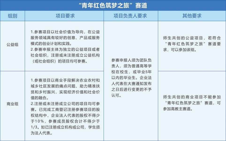 (五)参加“红旅”活动的项目可自主选择参加主赛道或“红旅”赛道比赛,但只能选择参加一个赛道。