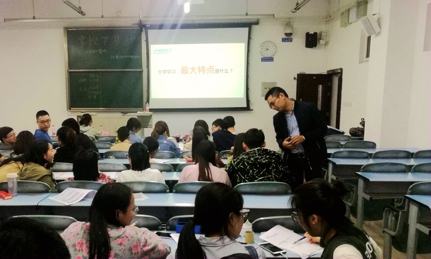 会议伊始,雷鸣老师将现场同学随机分为六组,发放相应的问卷,并提出了“读大学”与“混大学”的话题。“混大学”的,往往有着另一种名称——“延期毕业”,那么,是什么原因使那些曾经在高中也奋力拼搏的学子是如何变成这样“佛系大学生”呢?面对雷老师的问题,在场的同学们陷入了深思。