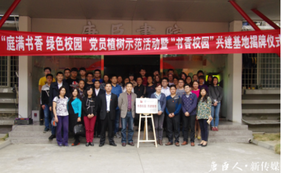 本次“庭满书香 绿色校园”党员植树示范活动暨“书香校园”共建基地揭牌仪式,积极响应上级党组织号召,充分发挥党员的先锋模范作用,同时改善了唐臣书院后花园的现有状况,在校园生态文明建设上起到了良好的示范作用。