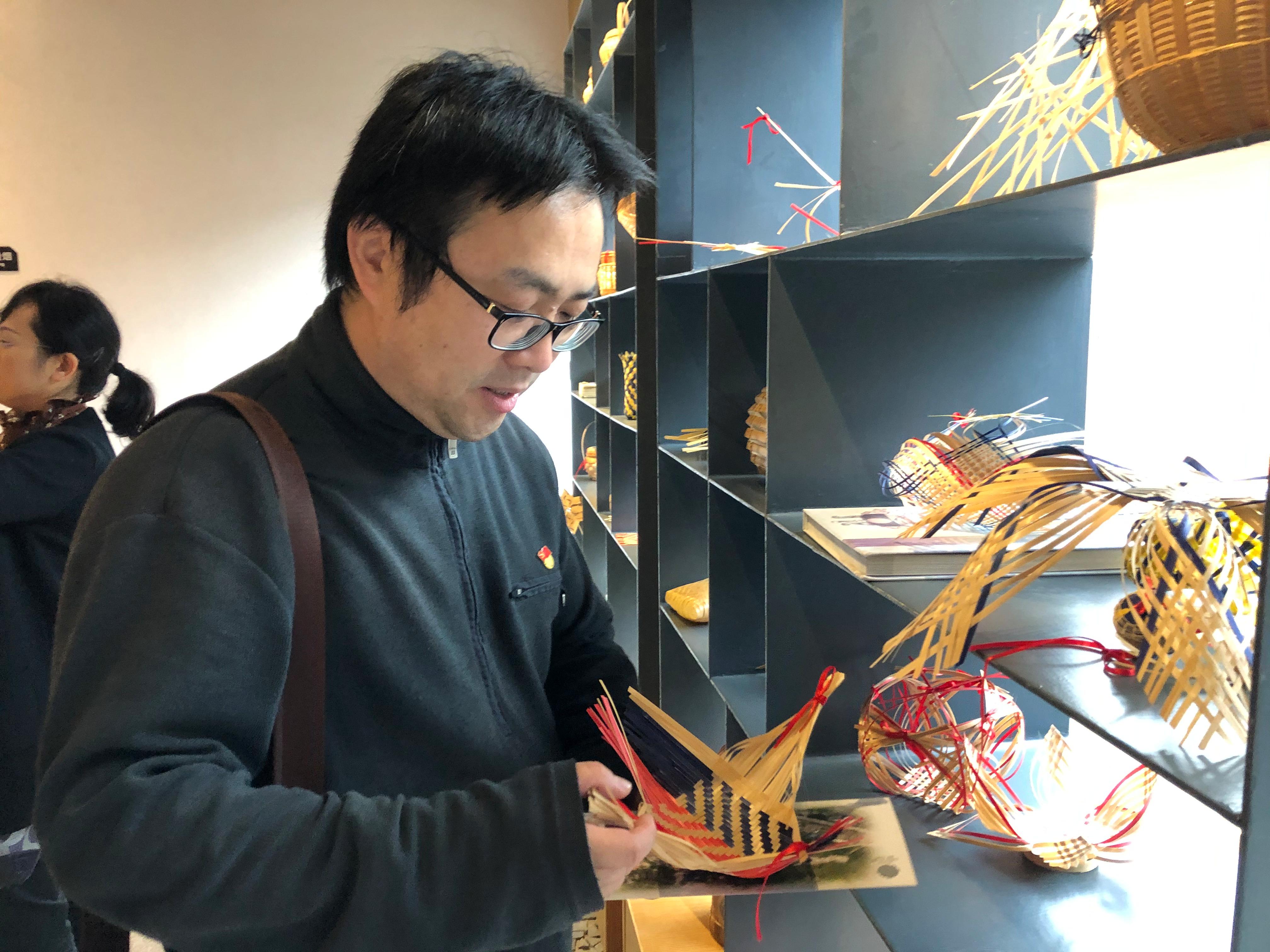 在丁知竹竹编文化博览厅,大家鉴赏了精美的竹编艺术及各式各样的竹编产品。有筲箕、果盘等简单的小型生活器具,有竹编字画、摆件等精美的居家装饰品,有轿子、龙船等大型竹编展览品,还有灯具、钟表等竹编新产品。高攀向大家介绍,“丁知竹”竹艺馆于2013年,由“道明竹编”传承人丁春梅及其父亲——道明镇注明竹编传承人丁志云一同创办,同年,“丁知竹”与中央美院城市设计澳门六合彩官网