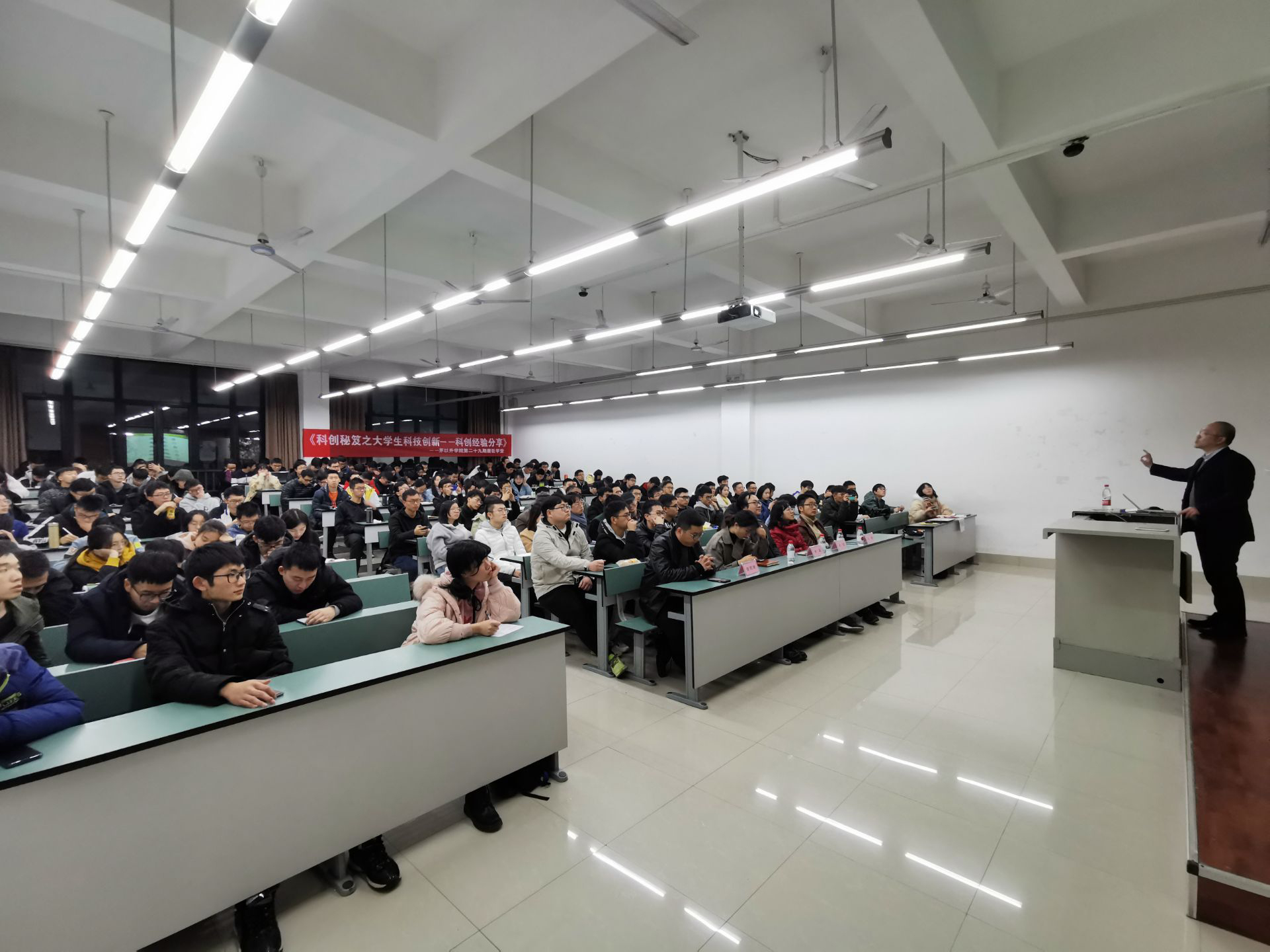 讲座开始,张教授从一个小小的矿泉水瓶盖说起,阐述了创新的重要性,“七分创意,三分基础”。他鼓励同学们调动自己天马行空的想象力,不要拘泥于现有的知识去搞科创。接着,张教授指出,要关注时事热点及环境变化,在变化中激发创新灵感。随后,他强调,同学们一定要增加自己的阅读量,阅读是决定一个人创新层次的要素之一,要多读,才能为创新打好基础。之后,他表示,文学艺术也是科研过程中的重要元素,要多去感受艺术的美,才能做好科研。最后,他强调科研一定要注重细节,细节决定成败。也要勇于挑战自己,做有意义的科研。