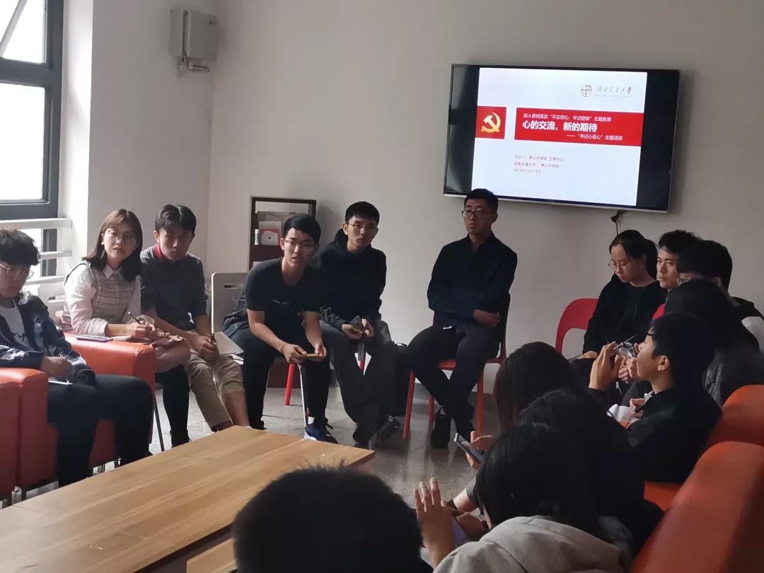 学子的热情却不减分毫。为了解答新生困惑,指导班级管理,“心的交流,新的期待——书记心连心”座谈会于2019年10月15日在唐臣书院三楼客厅举行。