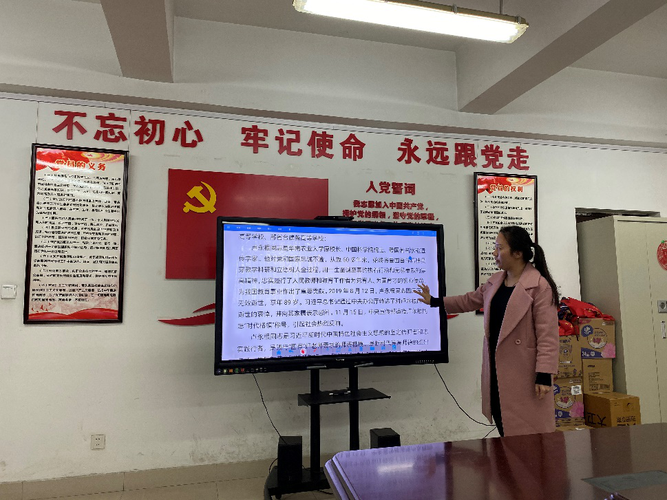 )中青年干部培训班开班式上发表重要讲话强调在常学常新中加强理论修养在知行合一中主动担当作为》讲话精神;王丹同志讲解了《教育部关于在教育系统深入开展向卢永根同志学习的通知》。