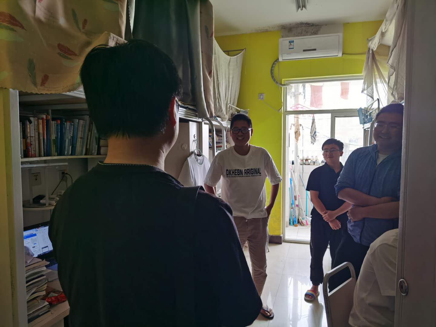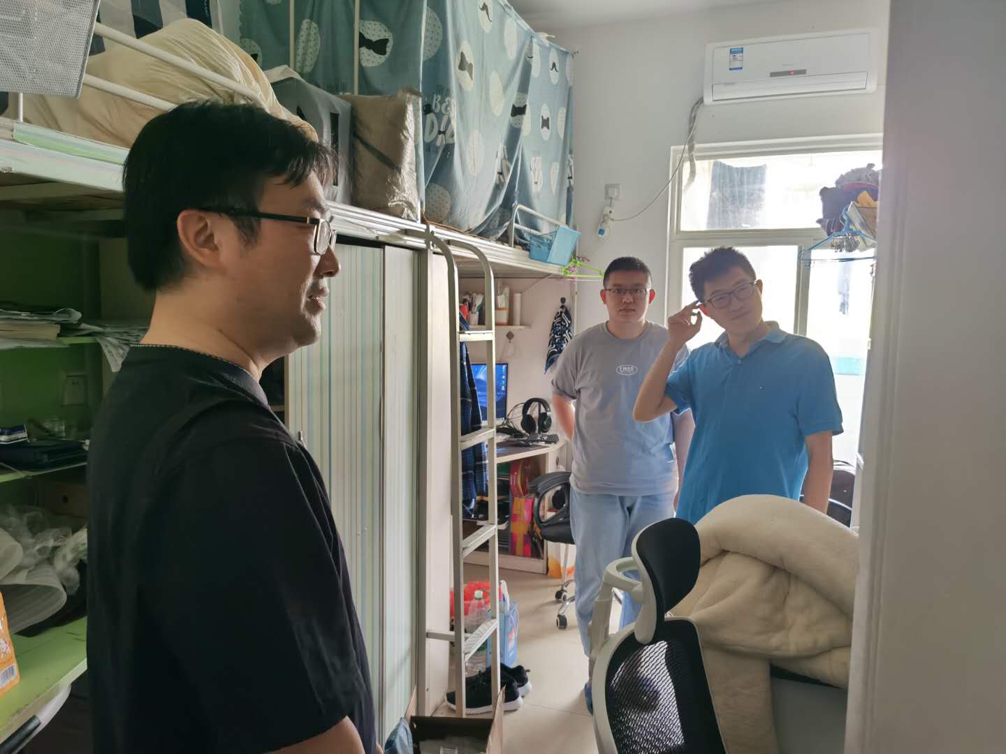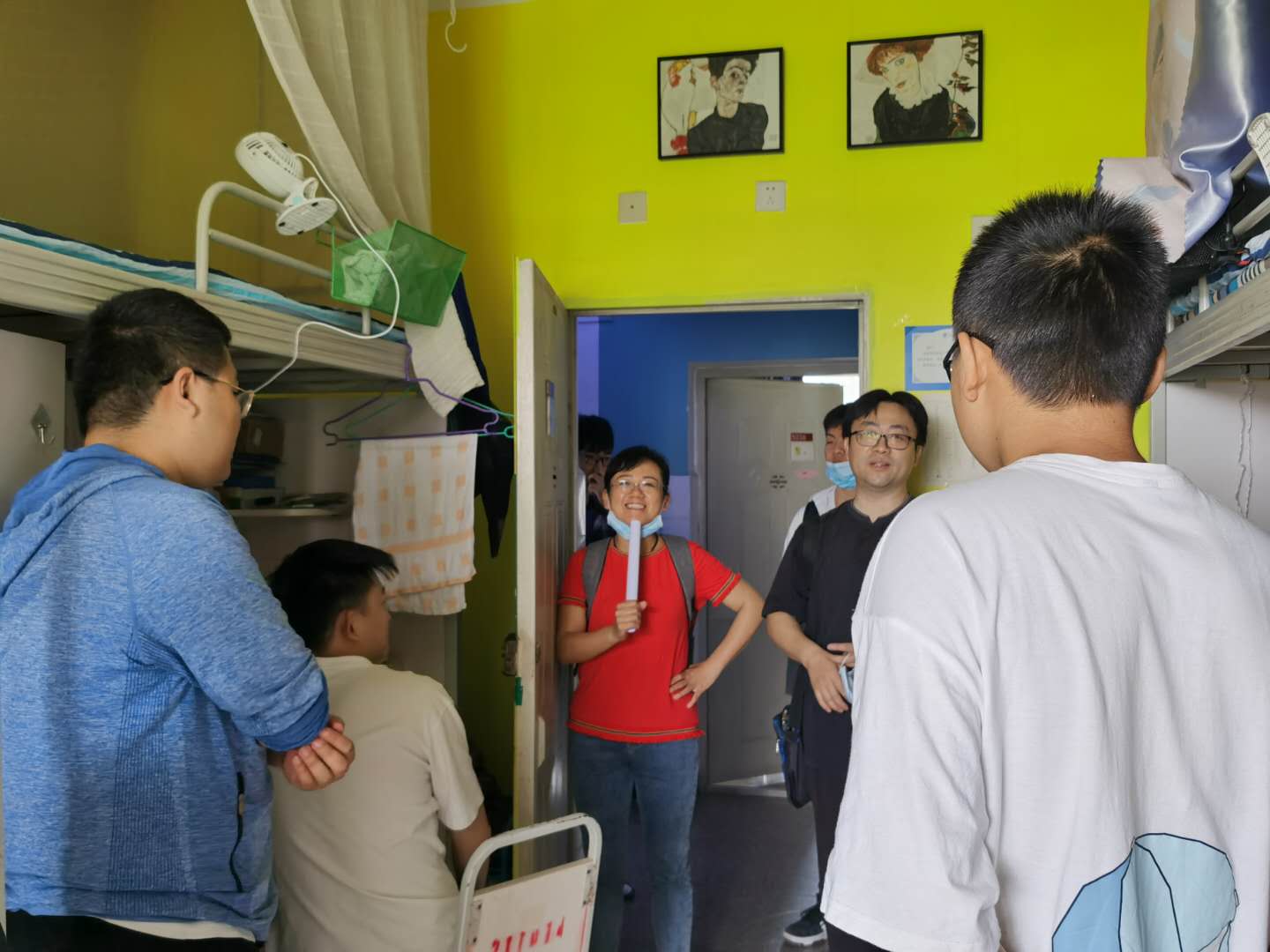 党总支书记甘霖、党总支副书记王霞带领辅导员深入书院返校学生宿舍,走访看望返校学子。甘霖书记与同学们亲切交谈,了解同学们疫情期间的健康状况、心理状态、学习情况、生活状况和毕业进展等情况。他叮嘱大家,在此特殊时期要严格遵守学校疫情防控的相关规定,保持高度的防范意识,尽快转变心态,合理安排好自己的学业、就业和生活,以积极的心态迎接返校生活。