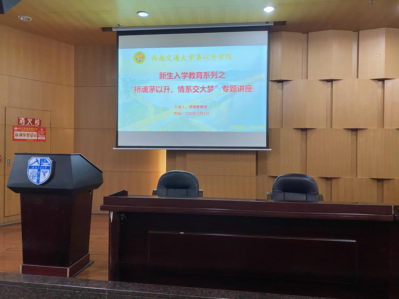 讲座介绍了老校友茅以升在一生中所展现的崇高精神。讲座大致分为以下几个部分:“茅以升生平”、“西南交通大学的好校长”、“中国现代桥梁的奠基人”、“社会活动家”、“风范长存”、“值得母校骄傲的好校友”。