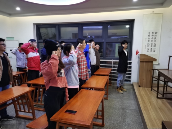 最后,团支书带领大家一起宣誓:做“厉行节约,反对浪费”的倡导者,实践者。
