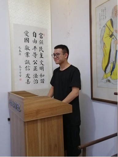 观看网上团课后,在团支书的组织下,同学们积极踊跃上台分享自己的体会。胡涛同学表示,他曾一度对自己的大学生活与未来十分迷茫。而此次活动提供了一个重新审视自己的机会,让他更加严格要求自己,在学习,生活与思想上抱着向上的态度,并积极向党组织靠拢。