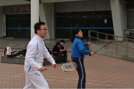 早上9:00,单人比赛开始,经过一番激烈的角逐,18级数学系的黄沿鑫同学最终斩获冠军。10:00,男女混合双打比赛开始,一番淘汰之后,决赛在范景涵、马羲和与杨天宁、孙晓雪之间展开。最终由范景涵与马羲和选手以2比0战胜对手,获得男女混双的冠军。同时,出席活动的6位老师也组成了三组混双,深入学生运动场所,加入到与同学们的比赛当中,最终甘霖老师和王霞老师混双组获得了冠军,与学生混双冠军进行了友谊赛。