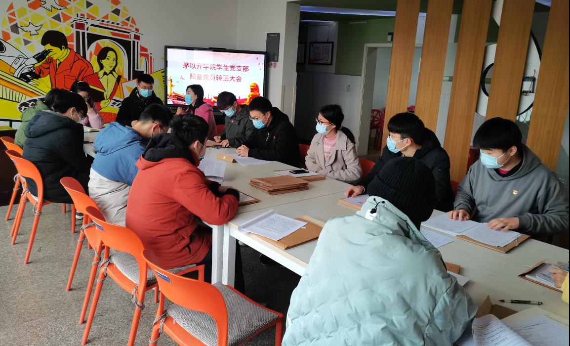 学生党支部在唐臣书院六楼励志厅召开支部大会,进行关于张家诚等16位预备党员转正的讨论和决议。