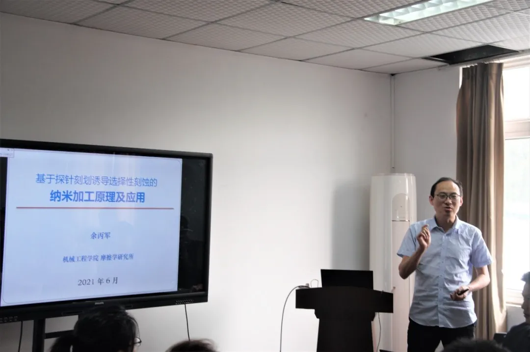 首先蔡振兵老师为大家介绍了摩擦学研究所的概况与研究领域、平台以及核能装备研究的相关知识。然后余丙军老师为大家介绍了微纳工原理以及应用研究进展。接着由江亮老师为大家介绍了超精密抛光研究进展,最后由丁昊昊老师为大家介绍了高铁轮轨装备研究进展。老师们深入浅出的科普使在场同学们受益匪浅。