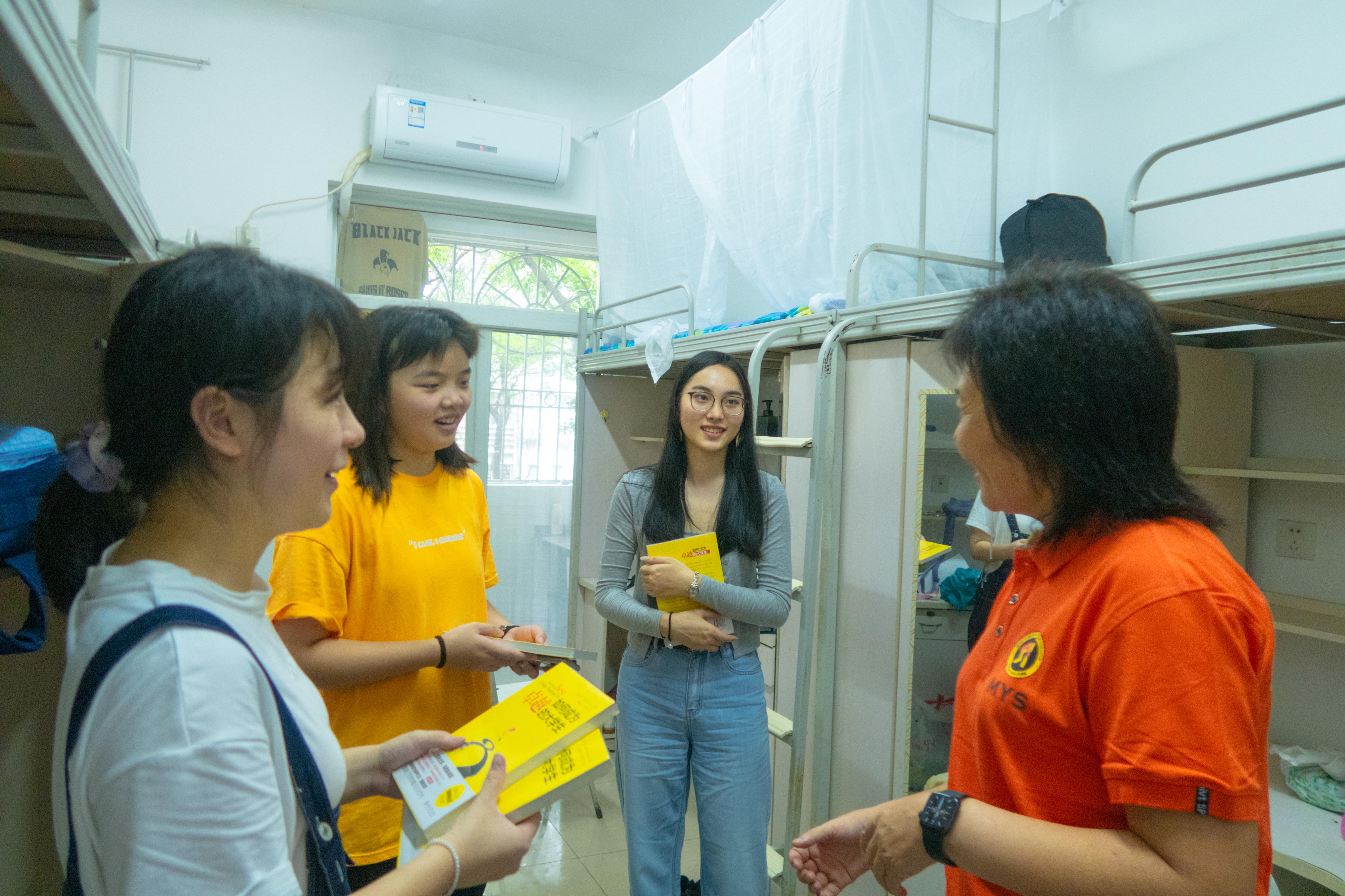 随后,冯院长又走访了多个新生宿舍,看望各专业新同学,向他们了解相关情况并对其寄予诚挚的祝贺与慰问。冯院长还向新生赠送了由美国教育家肯·贝恩撰写的《如何成为卓越的大学生》一书,希望茅院新生能够从书中汲取立身之道,为大学生活做好合理的规划,树立远大的志向,积极把握学习交流的机会,实现专业学习与各类文体活动的协调平衡发展。同时努力发扬“求实创新,卓尔乐群”的精神,为成为一名卓越奋进、博闻强识的大学生。冯院长的谆谆教诲,使同学们如沐春风,深受启发。