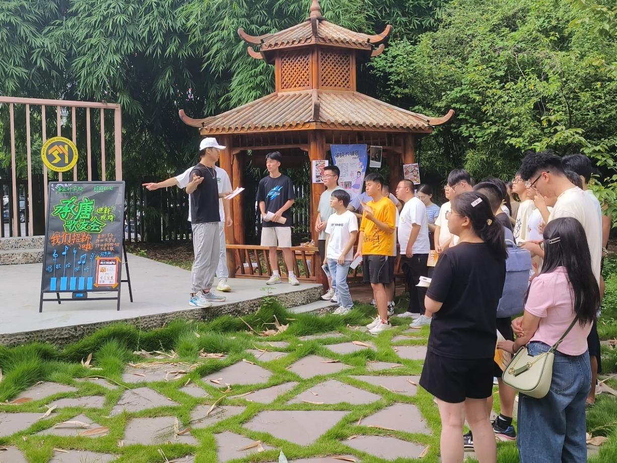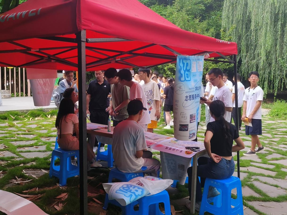 参观完书院内部空间后,志愿者们带着新生来到书院筑梦园。筑梦园里,书院各个社团组织摆好招新摊位,随着新生的到来开始宣传,新生在游园活动中既体验了书院后园的优美景色,又对感兴趣的社团组织加深了了解,对未来丰富多彩的大学生活充满期待。