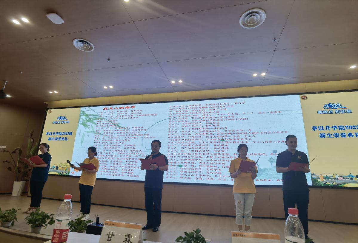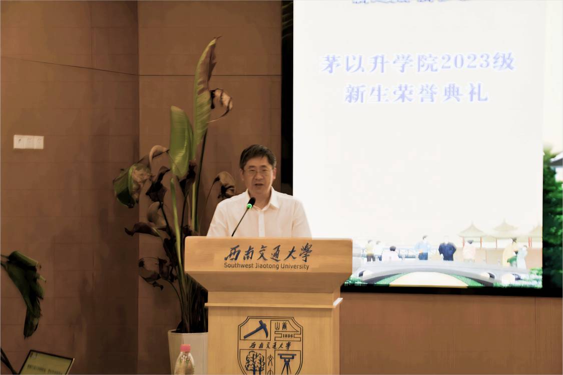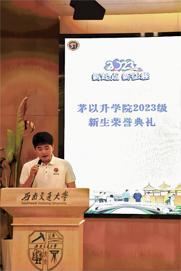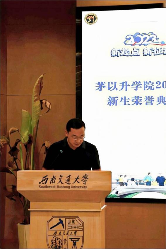 樊小强教授发言。樊教授在发言中希望新同学们尽快了解和学习茅以升老校长的生平历史,学习传承伟大的科学家精神,了解茅院办学宗旨、人才培养方案与政策,尽快融入茅院大家庭并进行学业规划,同时将青年人的朝气蓬勃、锐意创新发挥到极致,同时全面提升自己的时间意识、紧迫意识、团队意识、责任意识,成为面向未来的卓越工程师拔尖人才。随后,由唐臣书院驻院导师带来配乐诗歌朗诵《交大人的样子》,导师们的朗诵铿锵有力,饱含深情,诵出了新时代西南交大人青春、忠诚、创造、担当、宽广的样子,真的很美、真的很靓!