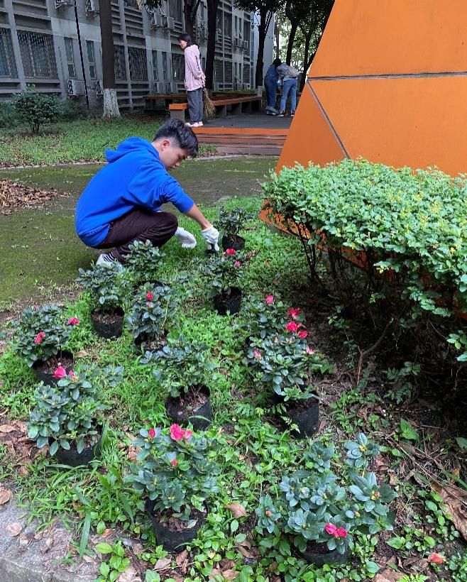 2023年9月28日下午,参加“双卓越”项目学生优秀党员自发开展了“种下映山红,红花迎国庆”志愿活动。同志们在书院门前的花台中种下了象征着革命精神的映山红,代表着青年党员对祖国的热爱,也表达了茅院学子对祖国的美好祝福。