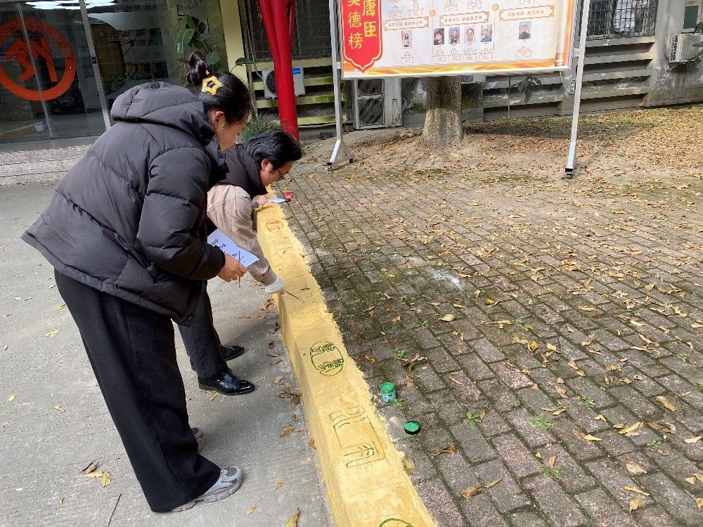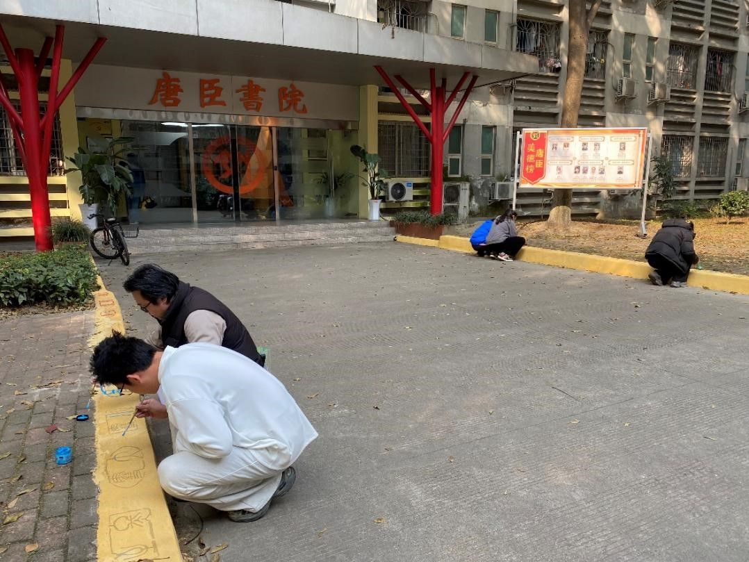 2023年12月7日,是二十四节气中的“大雪”。驻院导师甘霖、孟涵、任凯利三位老师与“卓尔国学社”梁雨欣、陈俊妮、杨昊东,“双卓越”培养项目党员吴佳朔和院刊《唐臣青年》编辑部施羽、书院学生自管会王晓波六位同学合作在唐臣书院门前两侧的路沿上,用小篆绘制了别具一格的二十四节气,旨在通过书写二十四节气的方式,传承和弘扬中华优秀传统文化。