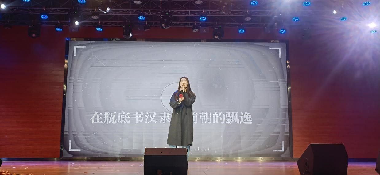 紧接着,由李羽彤、张誉航、李天意、杨廷晗、张靖晗、王冠雯六位同学带来的重唱歌曲《琵琶行》。这首歌的歌词取自最著名的中国古诗《琵琶行》,在改编成歌曲之后,用节奏欢快、旋律和谐的特点把古典音乐的精髓融入到了现代的复古音乐风格之中,给人带来新奇与乐趣。