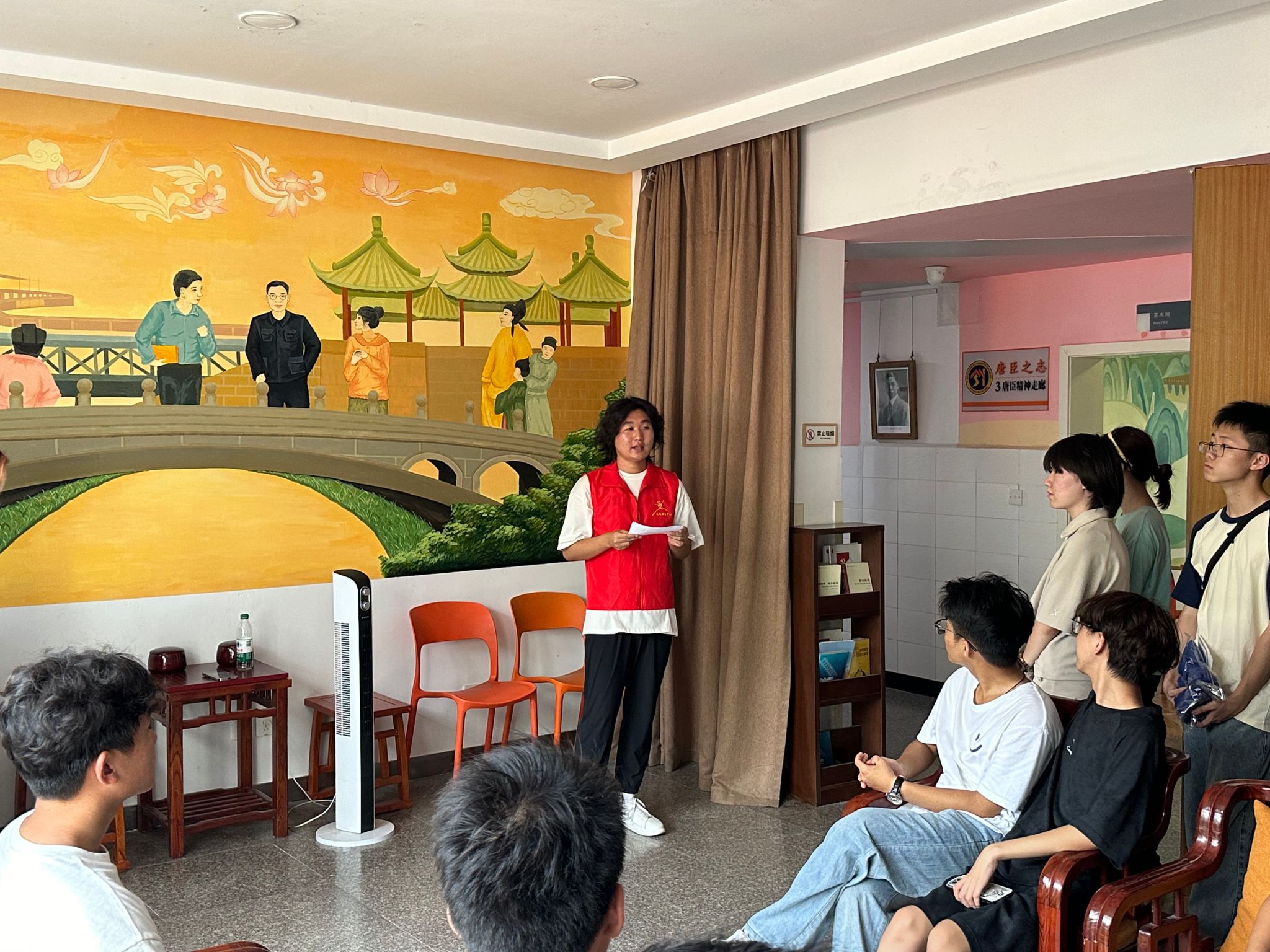活动当天,大使团成员提前到场,布置好宣讲场地,热情迎接新生们的到来。宣讲活动分别在唐臣书院的一楼大厅、各楼层公共区域以及筑梦园展开。在一楼大厅,大使团向新生们详细介绍了唐臣书院的历史沿革和办学特色,以帮助他们快速把握书院的文化脉搏。在公共区域,新生们近距离了解了茅以升先生的卓越贡献和崇高奉献精神,对未来的学习生活空间有了初步认识。筑梦园中,大使团着重阐释了书院环境育人和文化育人的理念,让新生们感受到了书院景观与文化的和谐统一。