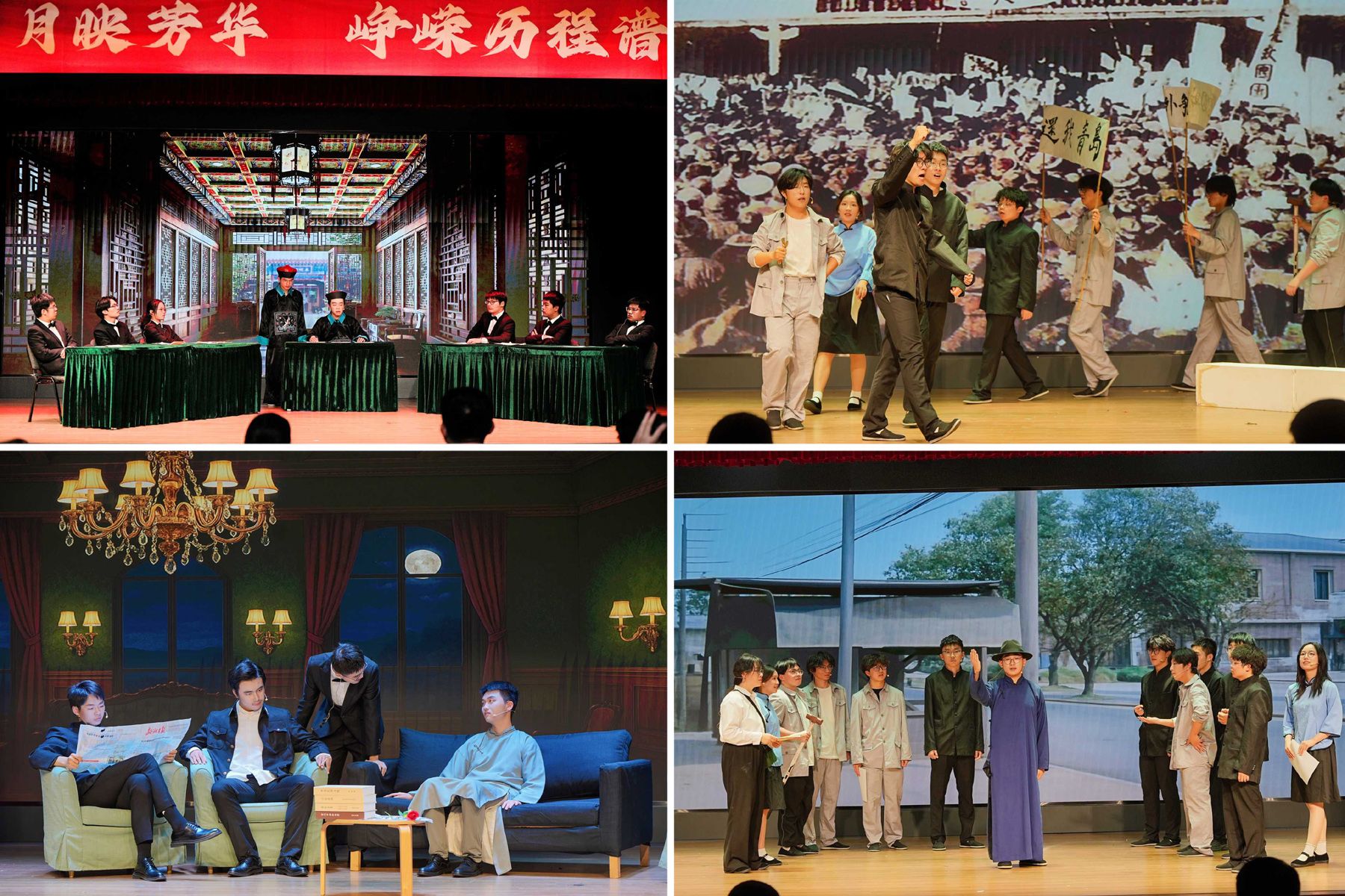 本次展演以四个篇章串联起中华民族从近代屈辱到伟大复兴的历史脉络,通过沉浸式舞台叙事打破传统思政教育的时空界限,让百年党史以可触可感的艺术形式活起来。剧目聚焦《辛丑条约》签订、抗美援朝等关键历史节点,重现新文化运动、西南联大抗战办学等经典场景,并以谍战题材片段致敬隐蔽战线的革命先烈,立体呈现了不同历史时期的民族精神内核。