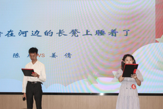 本次参加决赛的十位选手经过初赛线上、下比赛的激烈角逐,最终凭借优异的朗诵技巧和饱满的情感表达成功突出重围。决赛共分为两轮,第一轮比拼为五组选手共同演绎同一诗歌,面对当场随机发放的朗诵篇目,选手们虽然并不熟悉流畅地演绎出了一篇篇精彩的诗歌,演绎结束后,评委嘉宾为选手们进行点评。最终共六位同学成功进入第二轮比拼。