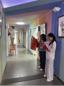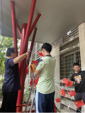 党总支甘霖书记和专职组织员孟涵老师的带领下分别在书院办公区走廊与书院门口庄重地悬挂国旗和党旗,为祖国送上诚挚的祝福,表达茅院学子对于党和国家的热爱之情!