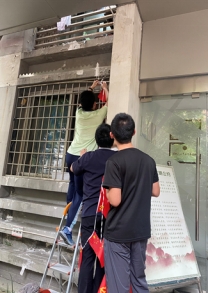 唐臣党员志愿服务先锋队开展了“热烈迎国庆,再添中国红”挂红旗迎国庆志愿服务活动。